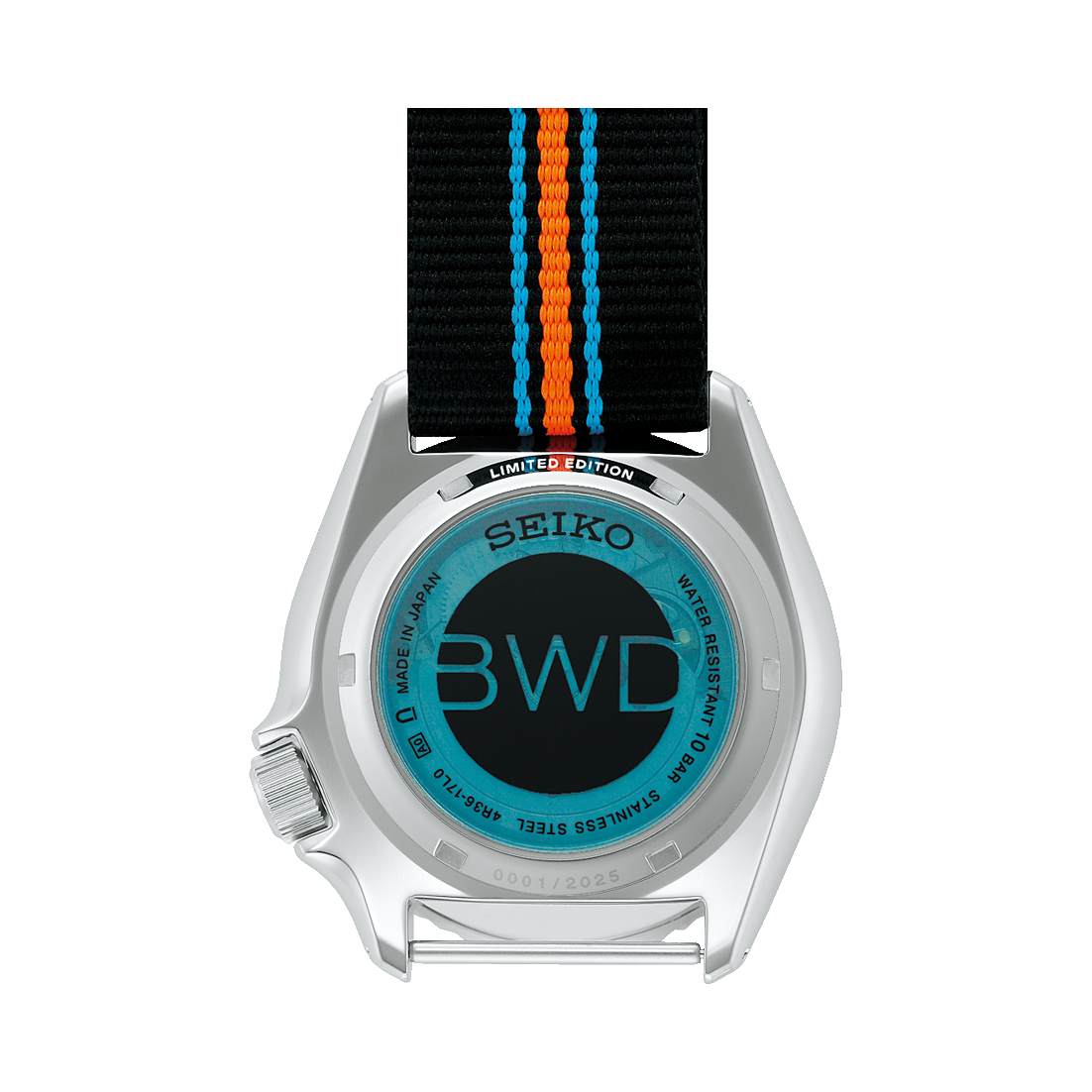 カスタムウオッチの 第一人者であり、バンフォード創業者でもあるジョージ・バンフォード氏が想い描く、日常の喧騒を離れた自由とリフレッシュを感じられる新たな世界=「パラダイス」への旅、というコンセプトのもとに誕生しました。人気の高いSKXシリーズをベースに選択し、セイコーのアーカイブモデルをコラージュ技法で再構築。懐かしさと未来感が融合した「レトロフューチャー」な世界観でカスタマイズされた、遊び心と独創性が際立つ特別な限定モデルです。