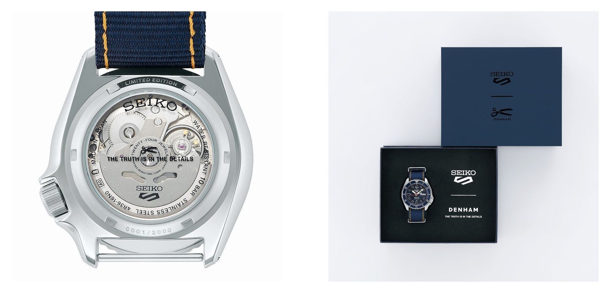 セイコーウオッチ株式会社(代表取締役社長:内藤昭男、本社:東京都中央区)は、<セイコー 5スポーツ>から、プレミアムデニムブランドDENHAMとコラボレーションした数量限定モデルを11月9日(土)より発売いたします。希望小売価格は59,400円(税込)です。全世界2,000本の数量限定です。