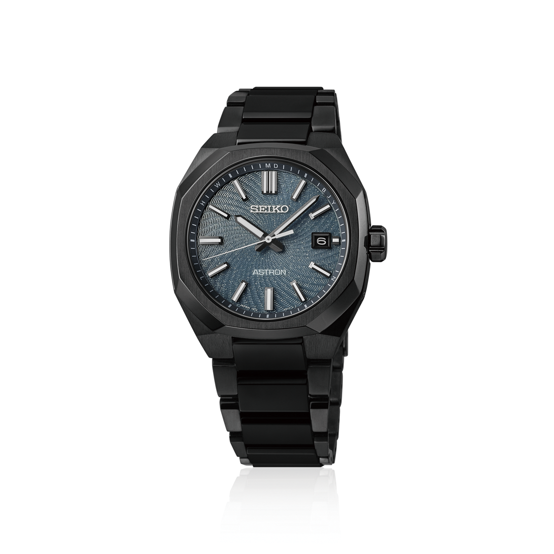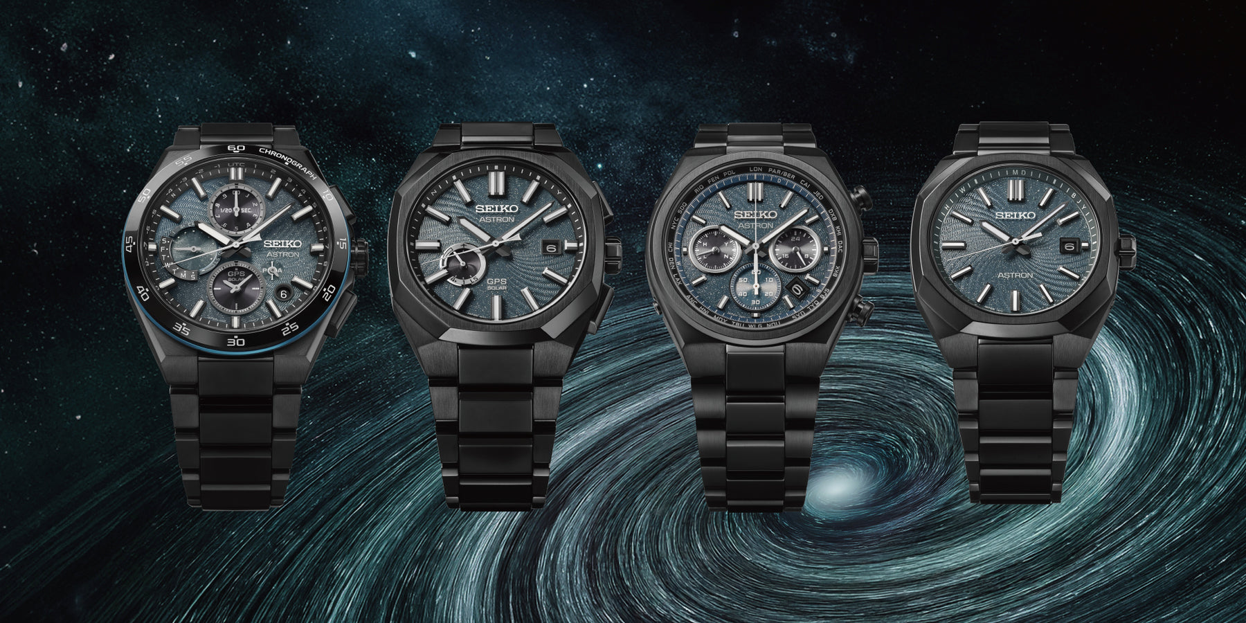 また、漆黒な宇宙の中で、渦巻く銀河が浮かび上がる様を、オールブラックカラーのケース・ブレスレットと、ダークターコイズカラーをベースとしたラメ入りダイヤルが表現しています。