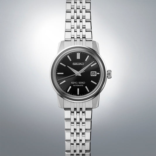 2022年のブランド復活から続く“KSK”シリーズに、シンプルな3針ダイヤルのモデルが登場。ケースサイズは、キングセイコーの現行モデルで最小となる36.1mmです。鏡面とヘアラインに磨き分けることで、コンパクトでありながら、“KSK”シリーズの特徴である稜線の際立つシャープなケースに仕上げました。