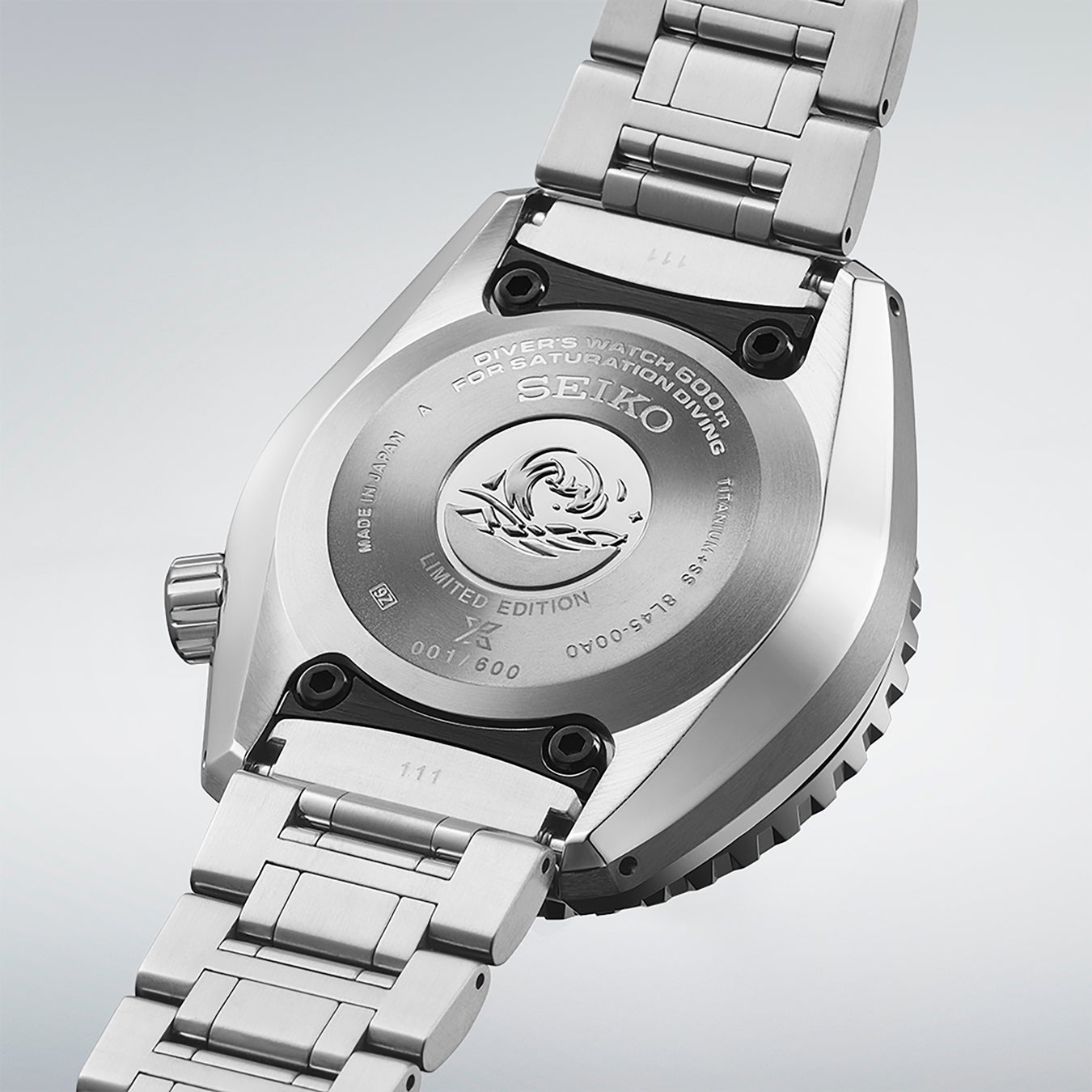 本モデルは、チタン製ワンピース構造の600m飽和潜水用防水となっており、その証としてダイヤルには「PROFESSIONAL」が記されています。ケース内に侵入したヘリウムガスが内圧を上昇させ、カバーガラスが外れるリスクを避けるため、セイコーはヘリウムガスをケース内に侵入させないという独自の発想で、1975年に600m飽和潜水用防水ダイバーズを開発しました。